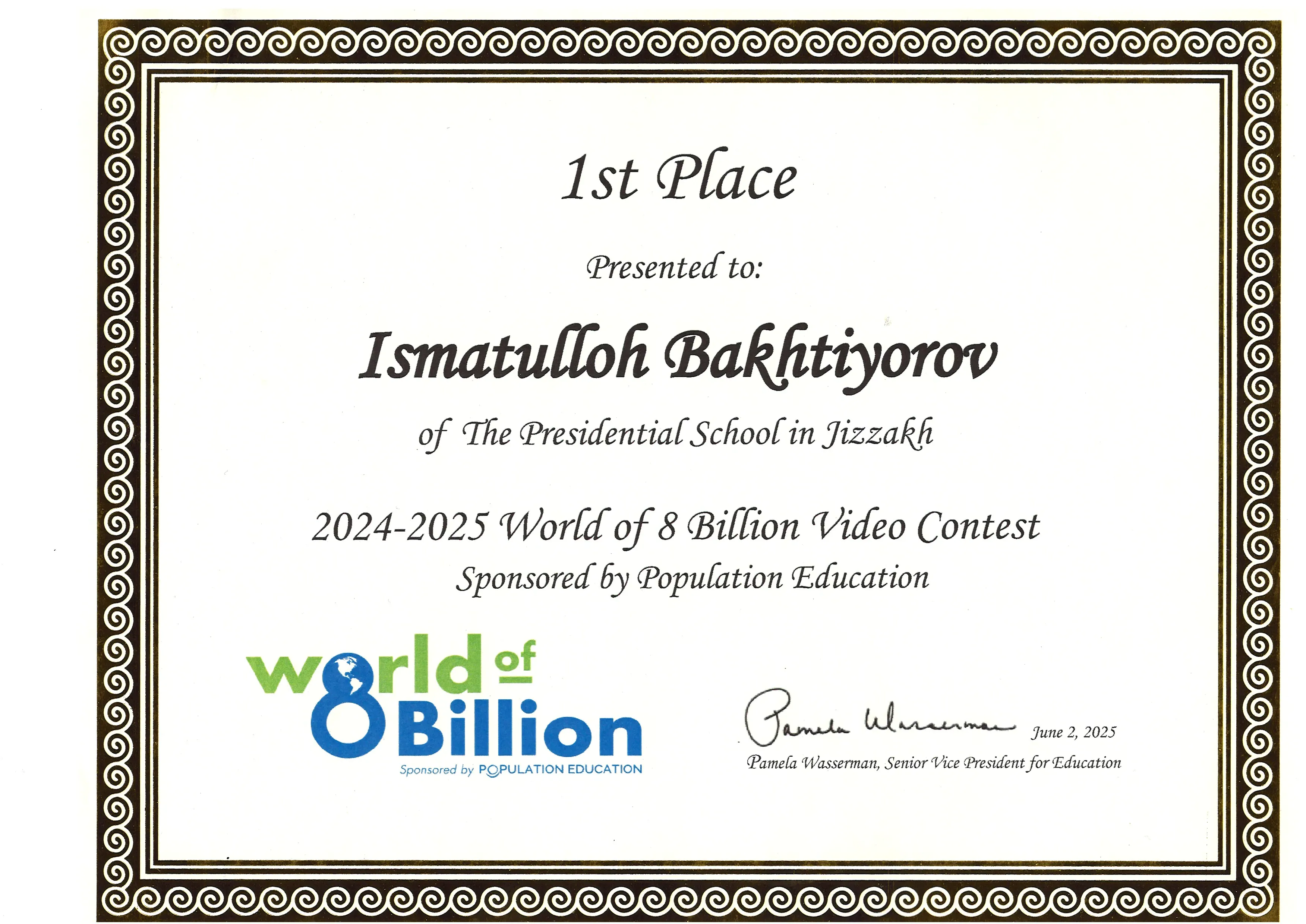 In the “World of 8 Billions” video contest, our team created a video titled “Brighter Future for Every Child”, focusing on child well-being. More than 4,600 students participated in this annual contest, organized by Population Connection’s Population Education program and judged by a panel of educators, filmmakers, and sustainability experts. The winners were recognized for compelling messages and creative approaches, proposing innovative solutions such as solar-powered composting toilets, farm-to-family partnerships, agroforestry, and reimagining public transit.