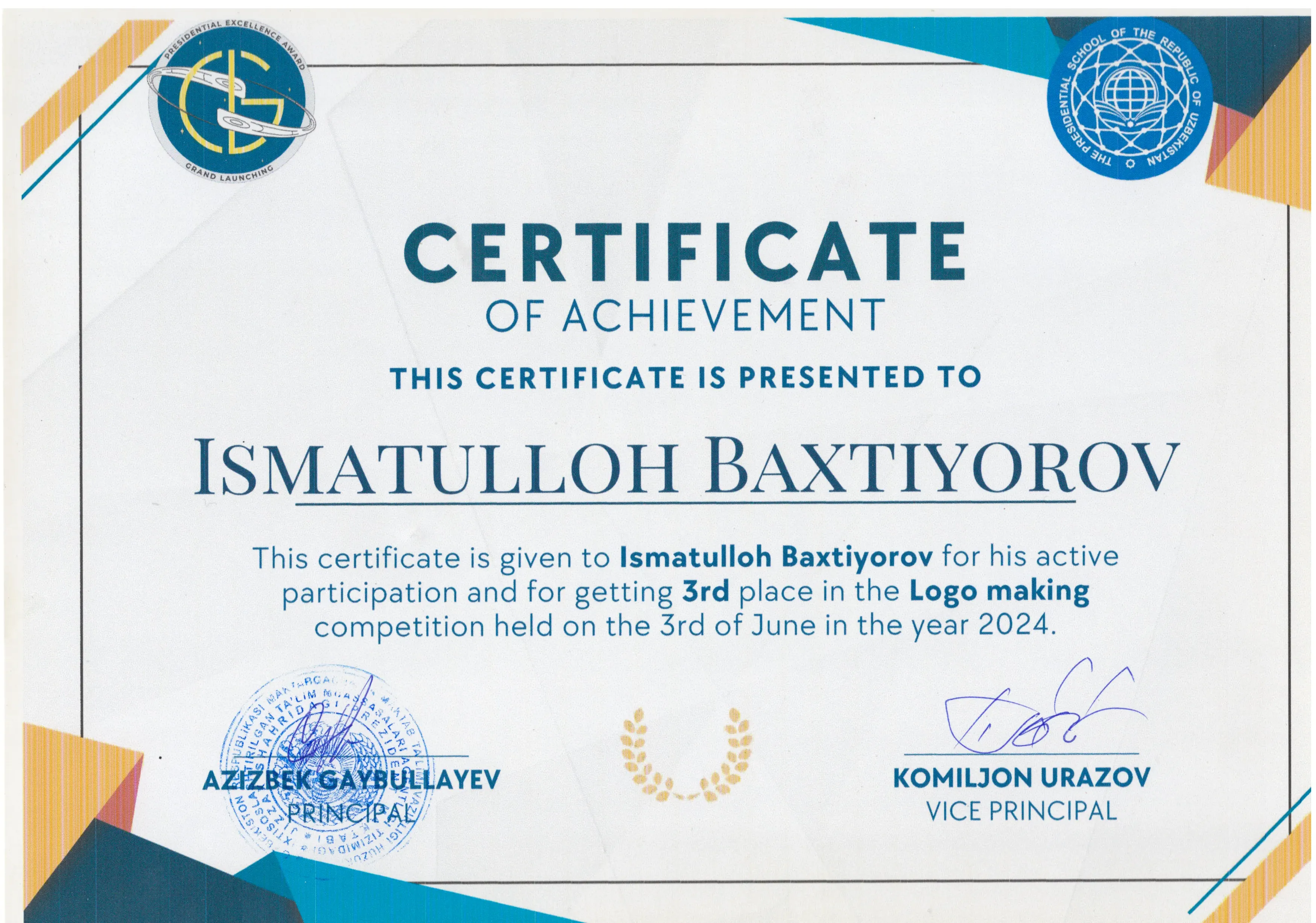 I am proud to have earned third place. The process challenged me to combine creativity with clarity—thinking not just about colors and shapes, but about the message and values the logo should communicate.
